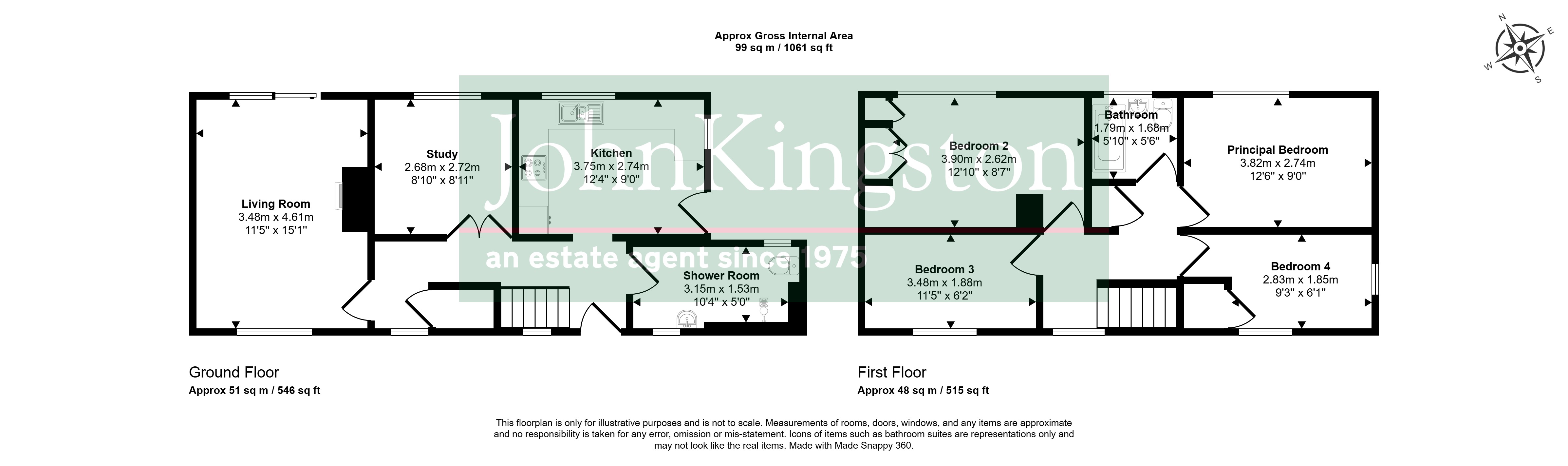 Doors to shower room, study and living room, opening to kitchen, stairs up to first floor. Double glazed windows to front, cupboard housing consumer unit and electric meter.