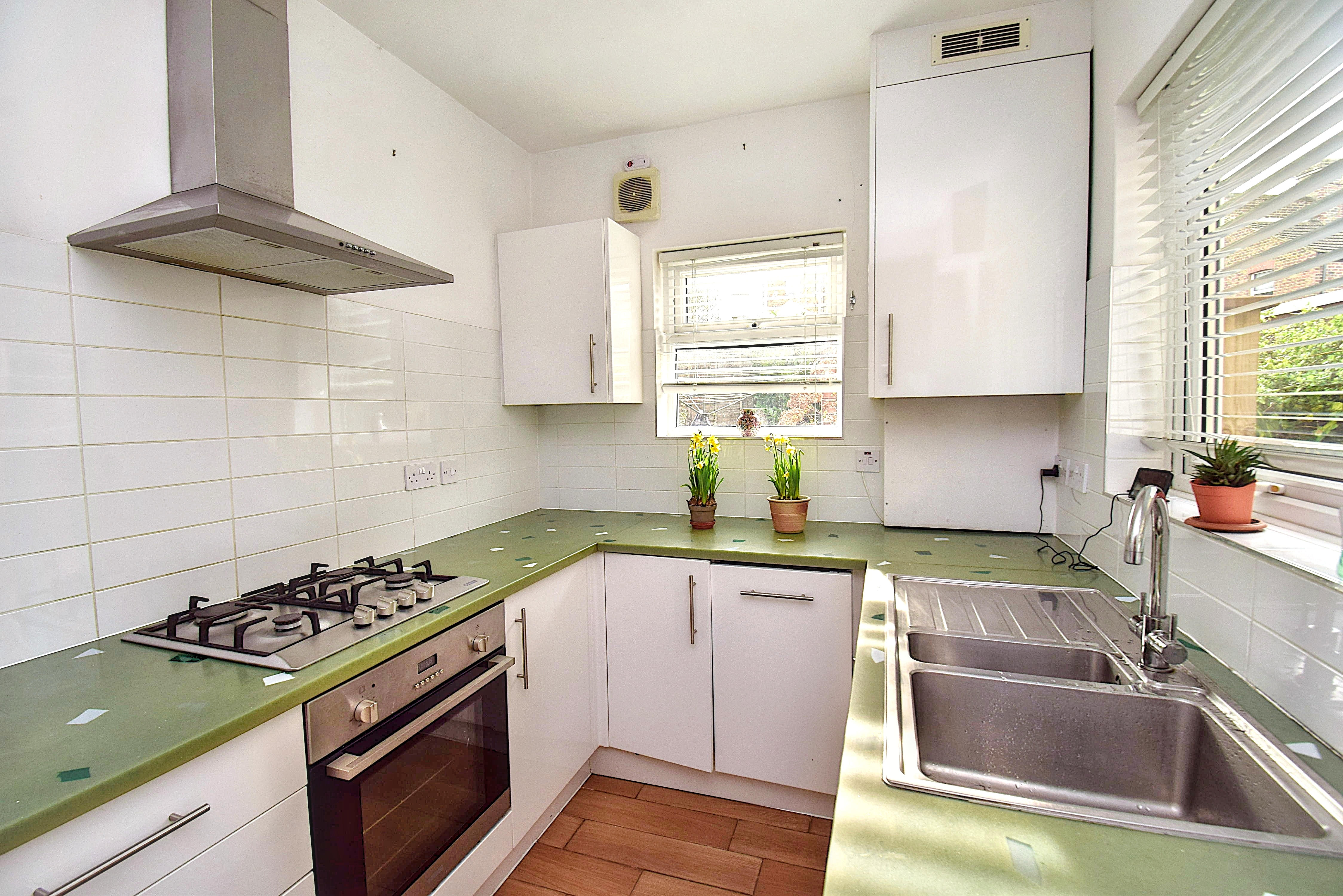 11' x 7' (3.35m x 2.13m) an excellent range of ground and wall cupboards, sealed unit double glazed windows to the rear and side, decorative worktops incorporating a one and a half bowl single drainer stainless steel sink unit with mixer tap, cupboard under, built in slimline dishwasher, half tiled walls, cupboard housing a Worcester gas fired combination boiler serving the central heating and hot water, space for a fridge/freezer, set of drawers, Lamona 4 ring gas hob with oven under, stainless steel extractor canopy hood over, space and plumbing for a washing machine, tiled floor, down lighting.