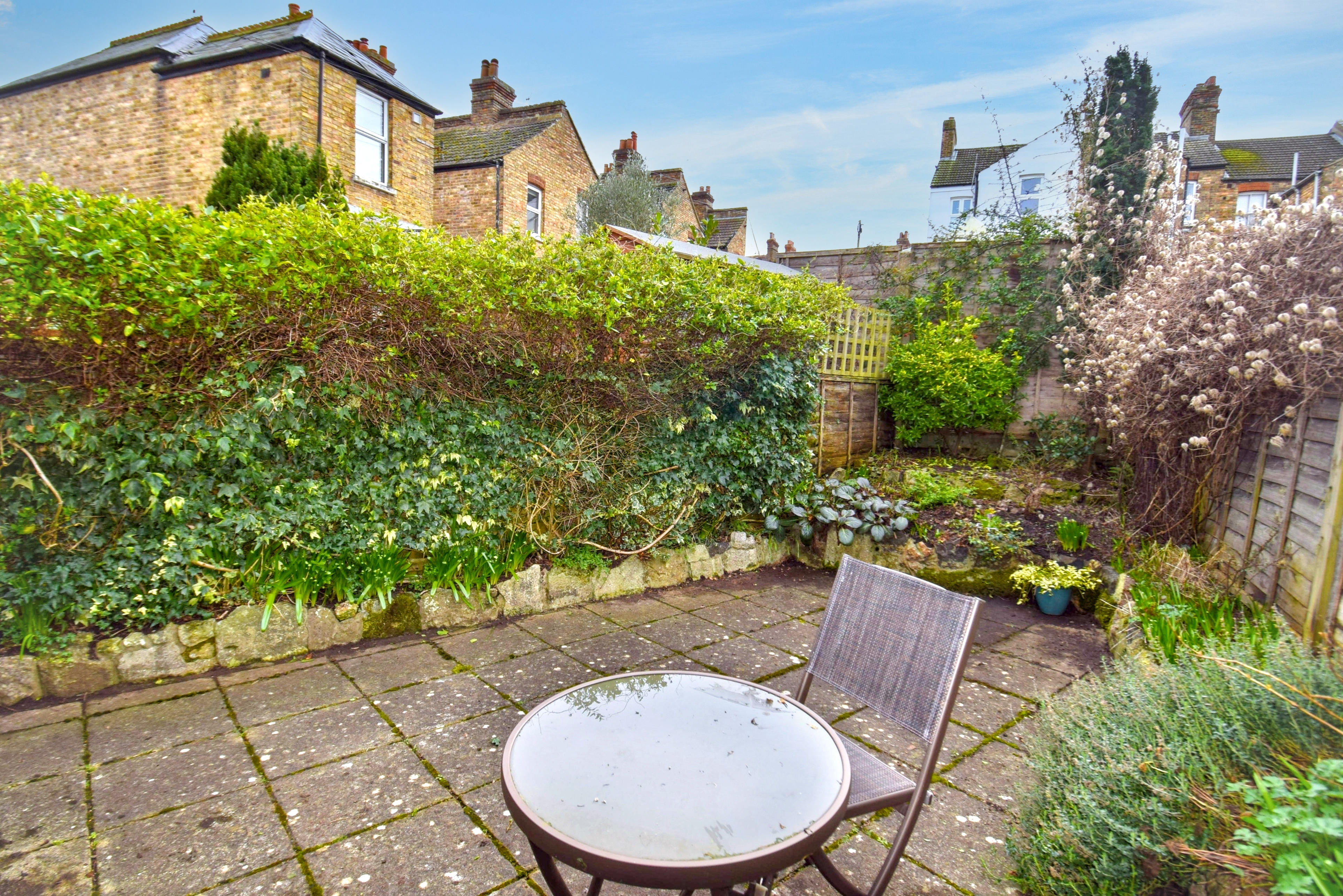 The south facing rear garden extends about 25ft and has been tiled with good quality non slip tiles with decorative walling, there are well stocked flower borders with an array of shrubs and bushes, outside water tap, security lighting, access leads around to the front and alcove for bin store.