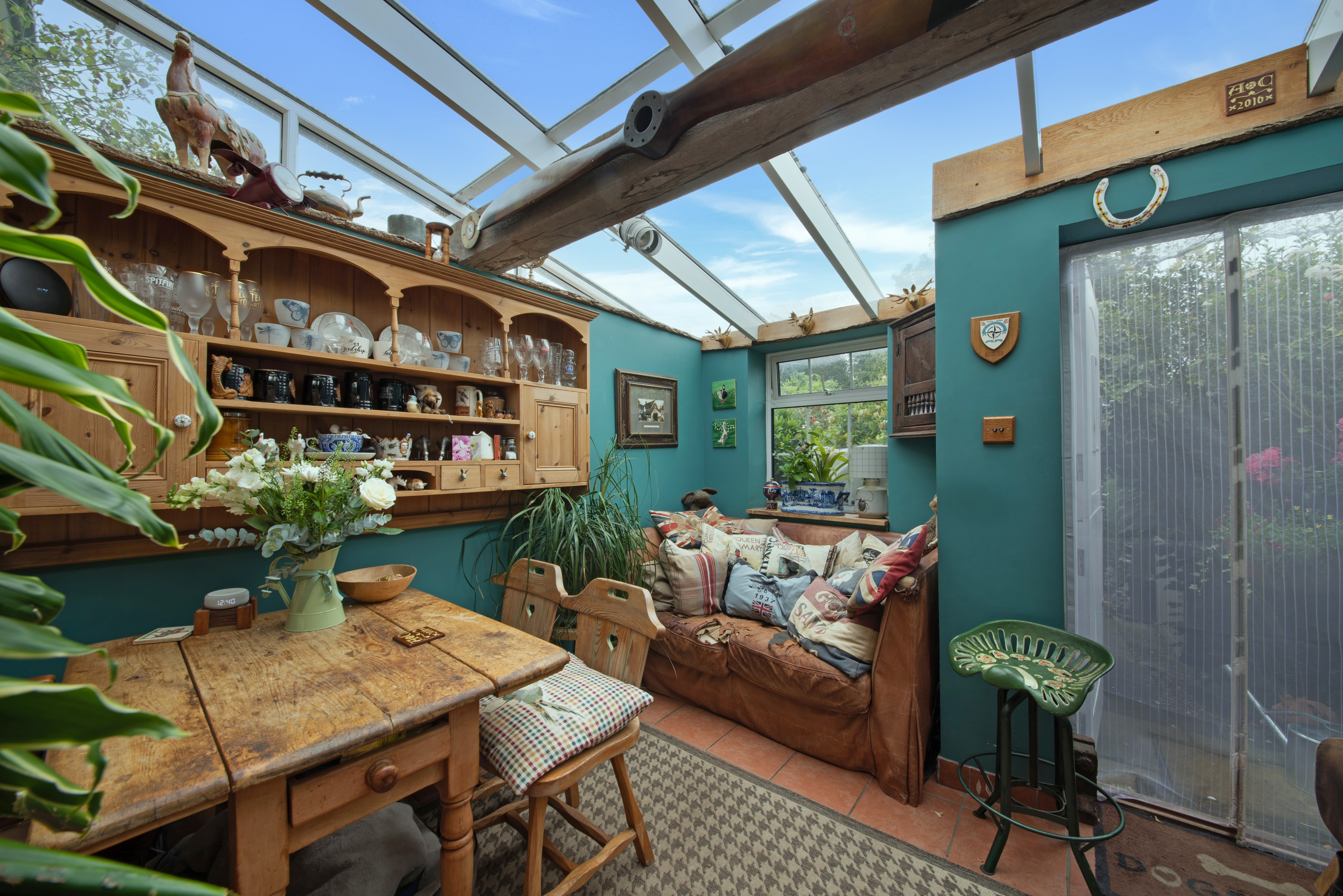 A more recent extension, with a decorative log panel, exposed stone, double glazed window to rear, tiled floor and stable door to the garden. The glazed ceiling allows an abundance of natural light to fill the room, making it the perfect bright dining, seating or breakfast area.