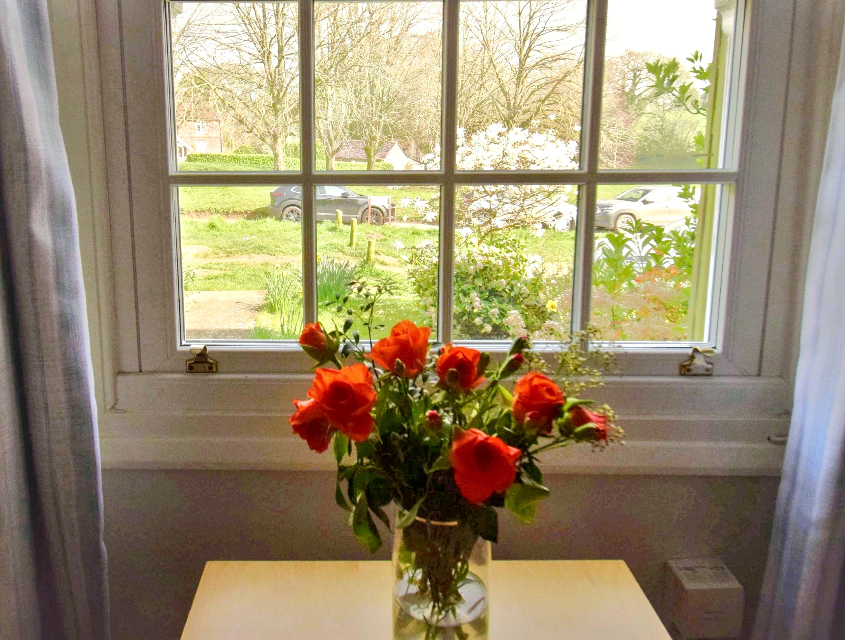 Steps to front door small area of garden with pretty Magnolia. Facing onto Godden Green offering a lovely aspect.